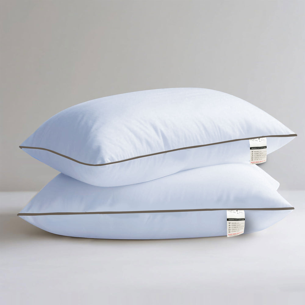 Hotel Quality Pair of Standard Hollow-fiber Filled Pillow, Breathable, Hyperallergenic, Plush Hotel-Style Down Alternative, Medium-Firm Support, Quick bounce back (2, Single Piping Pillow)